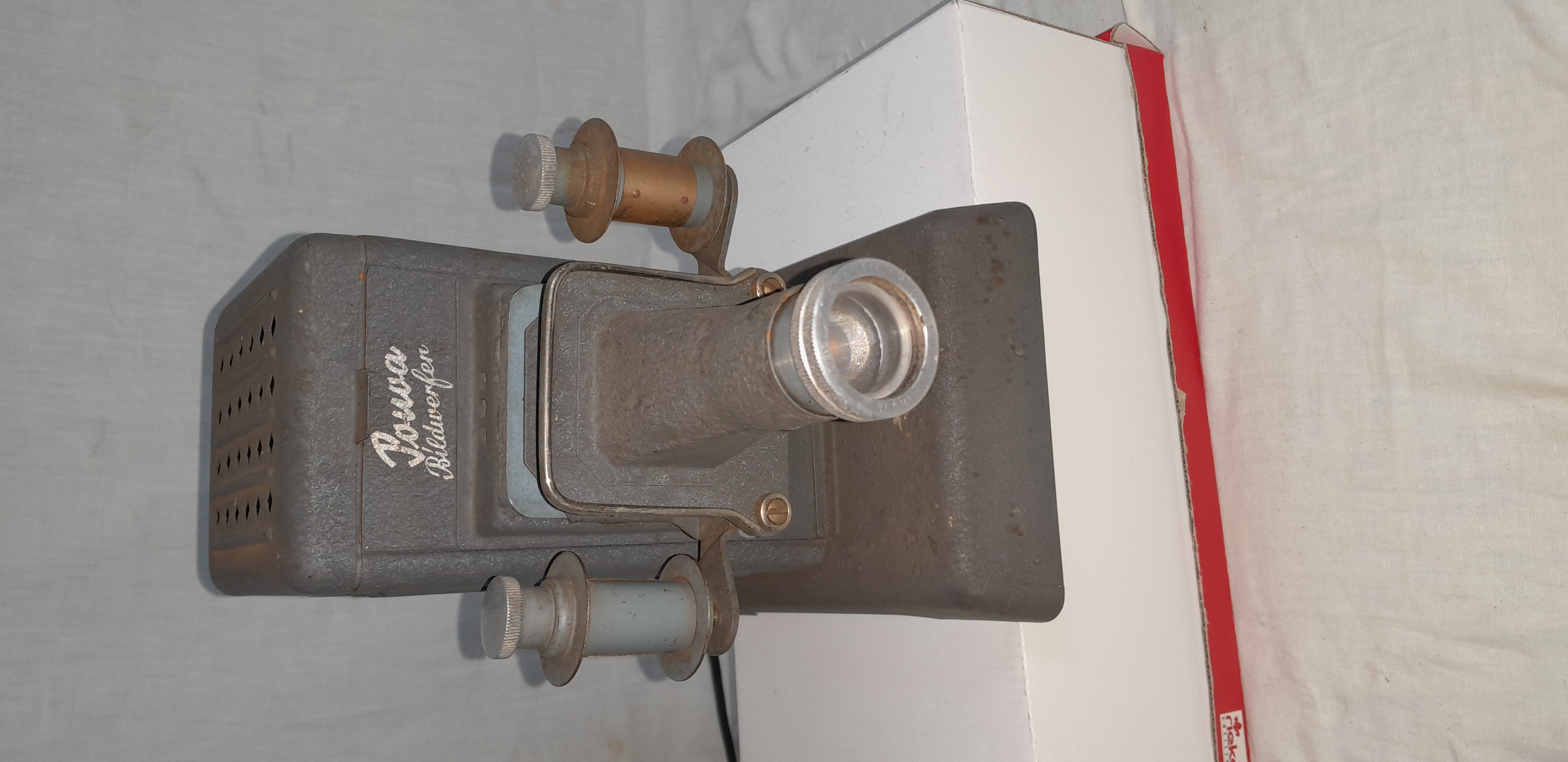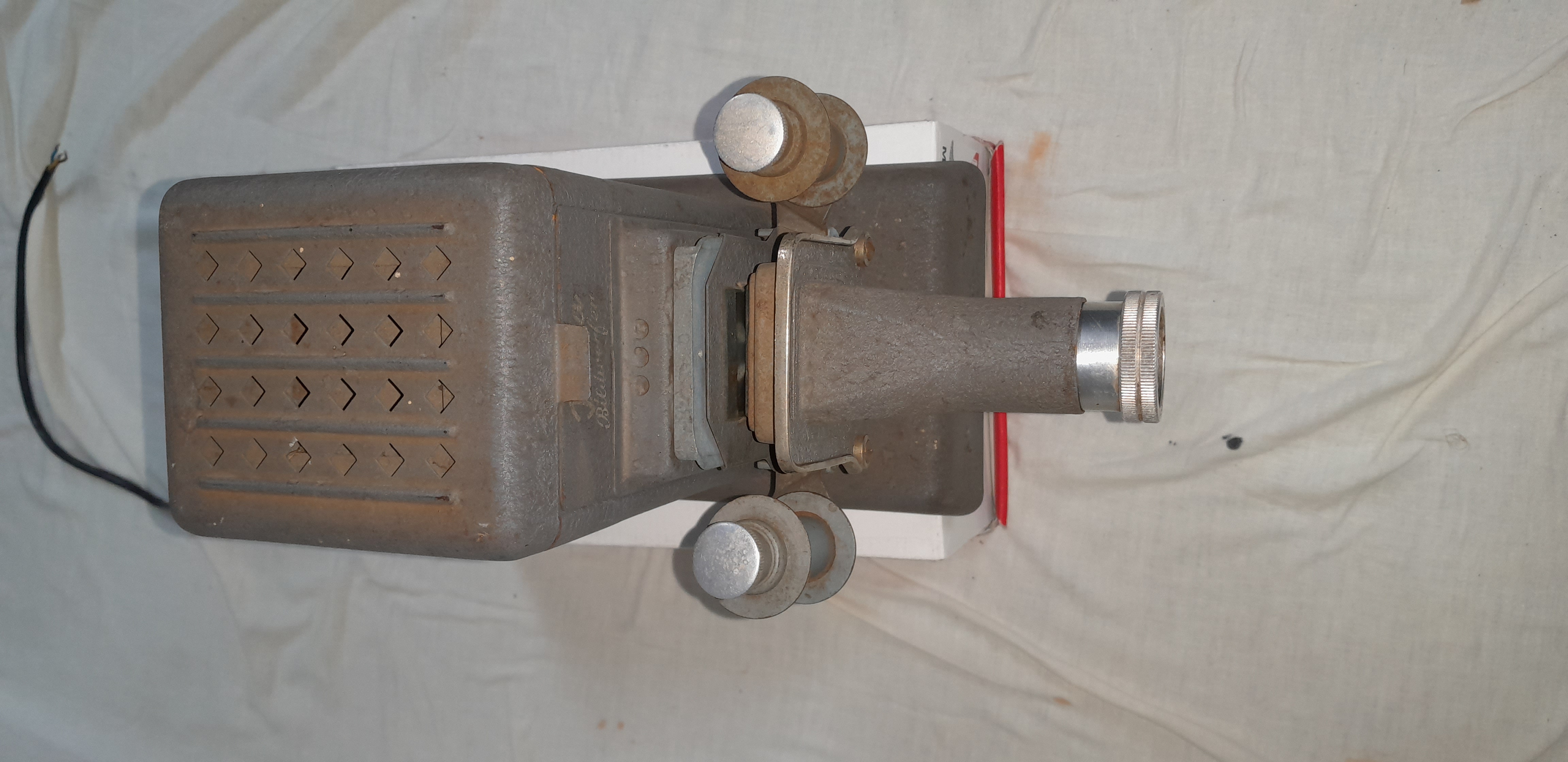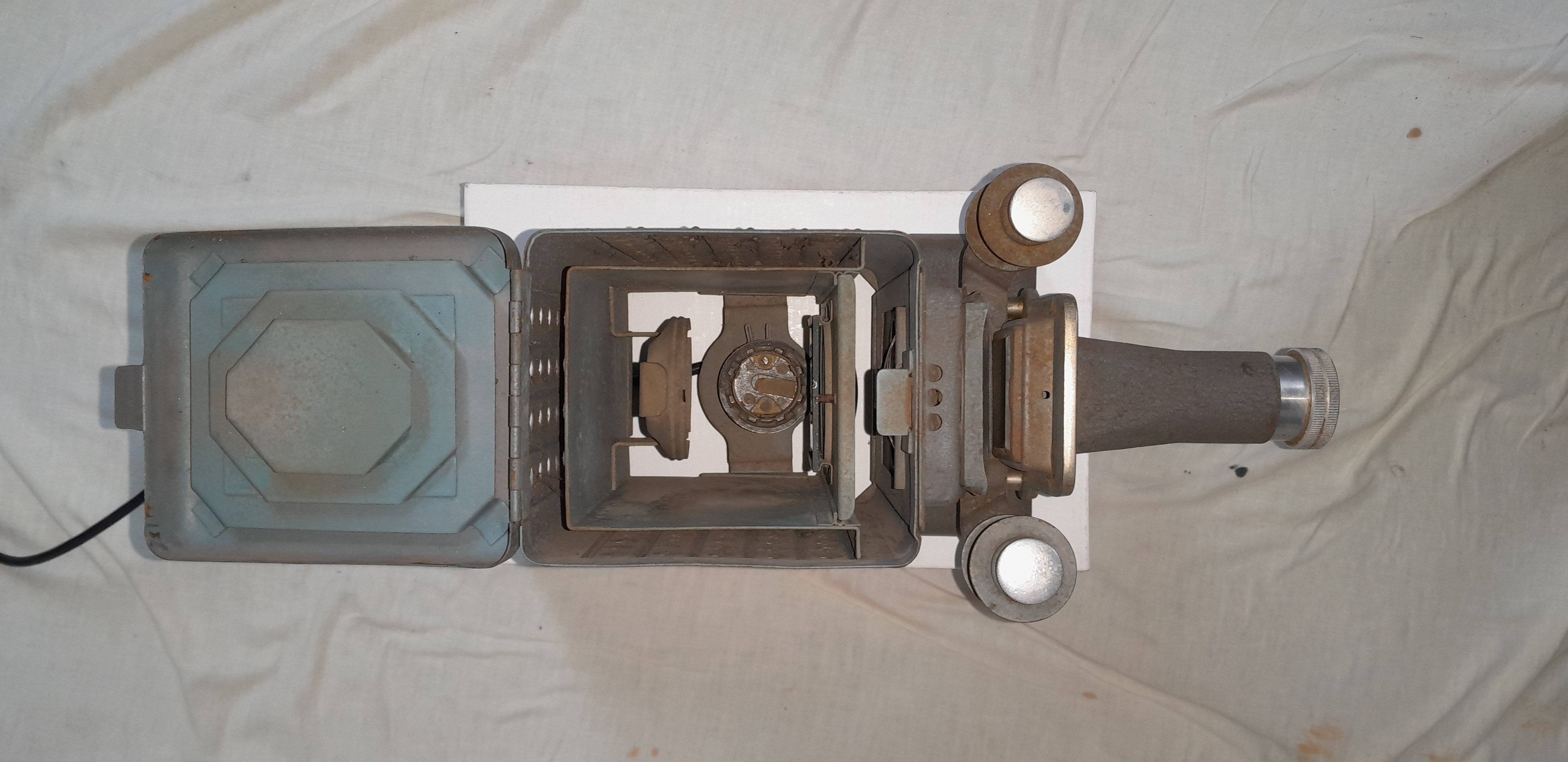 Dazu werden die Filme auf die Rollspulen gewickelt. Eine lichtstarke Lampe leuchtet durch die Filme / Dias und projiziert den