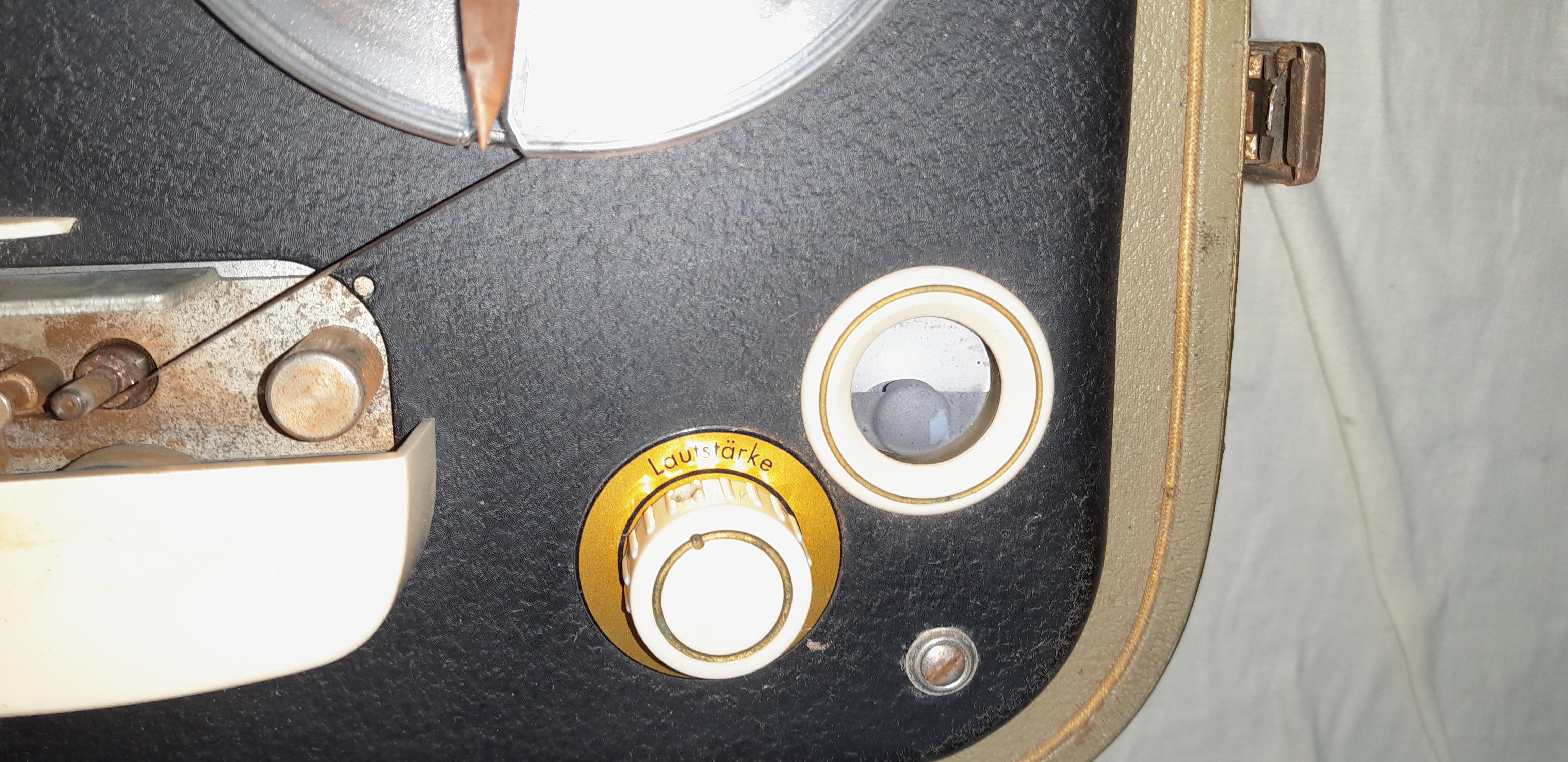 EM71 ist ein „magisches Auge“, eine optische Anzeige für die Aussteuerung des Tonbandsignals.