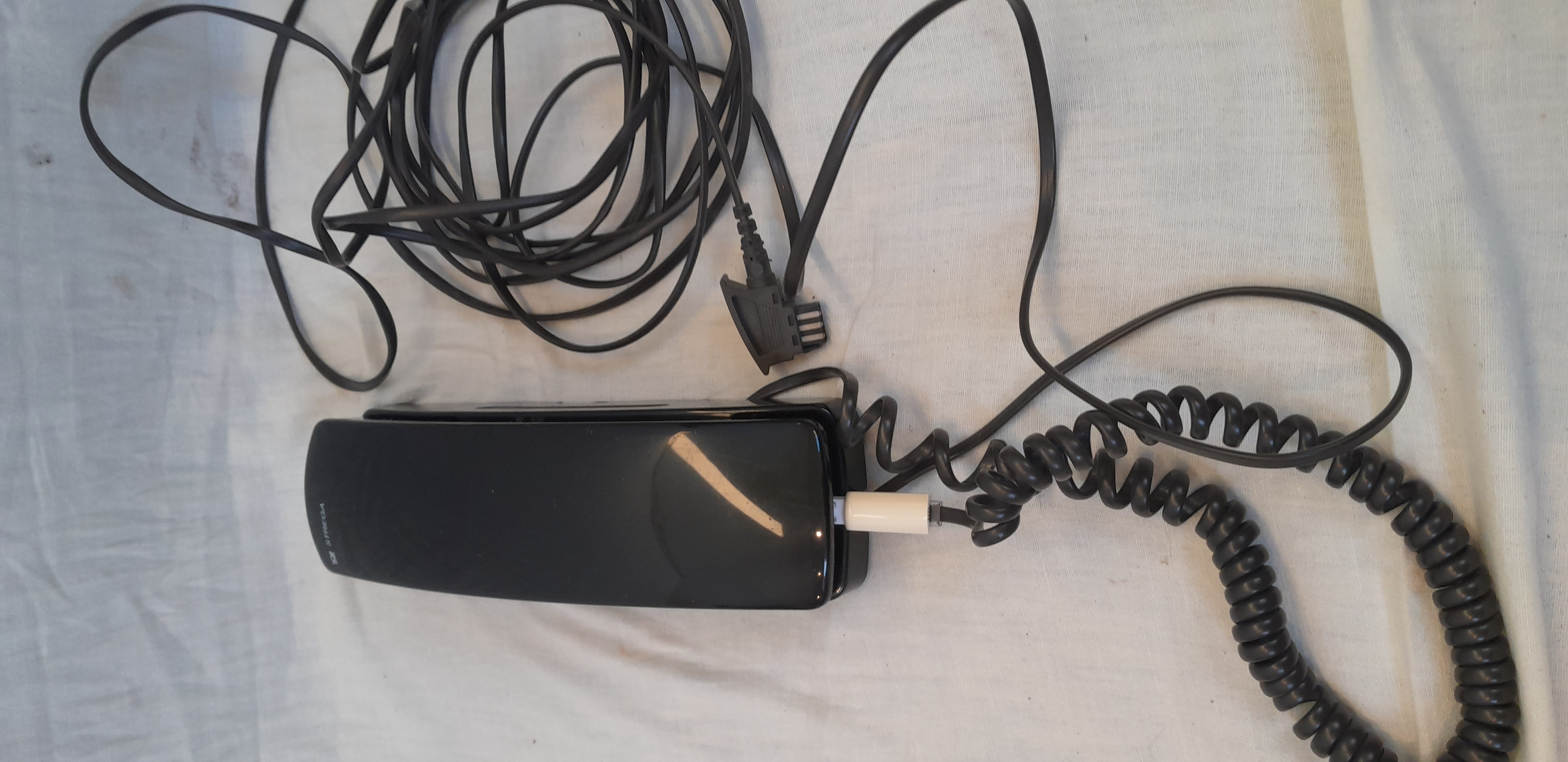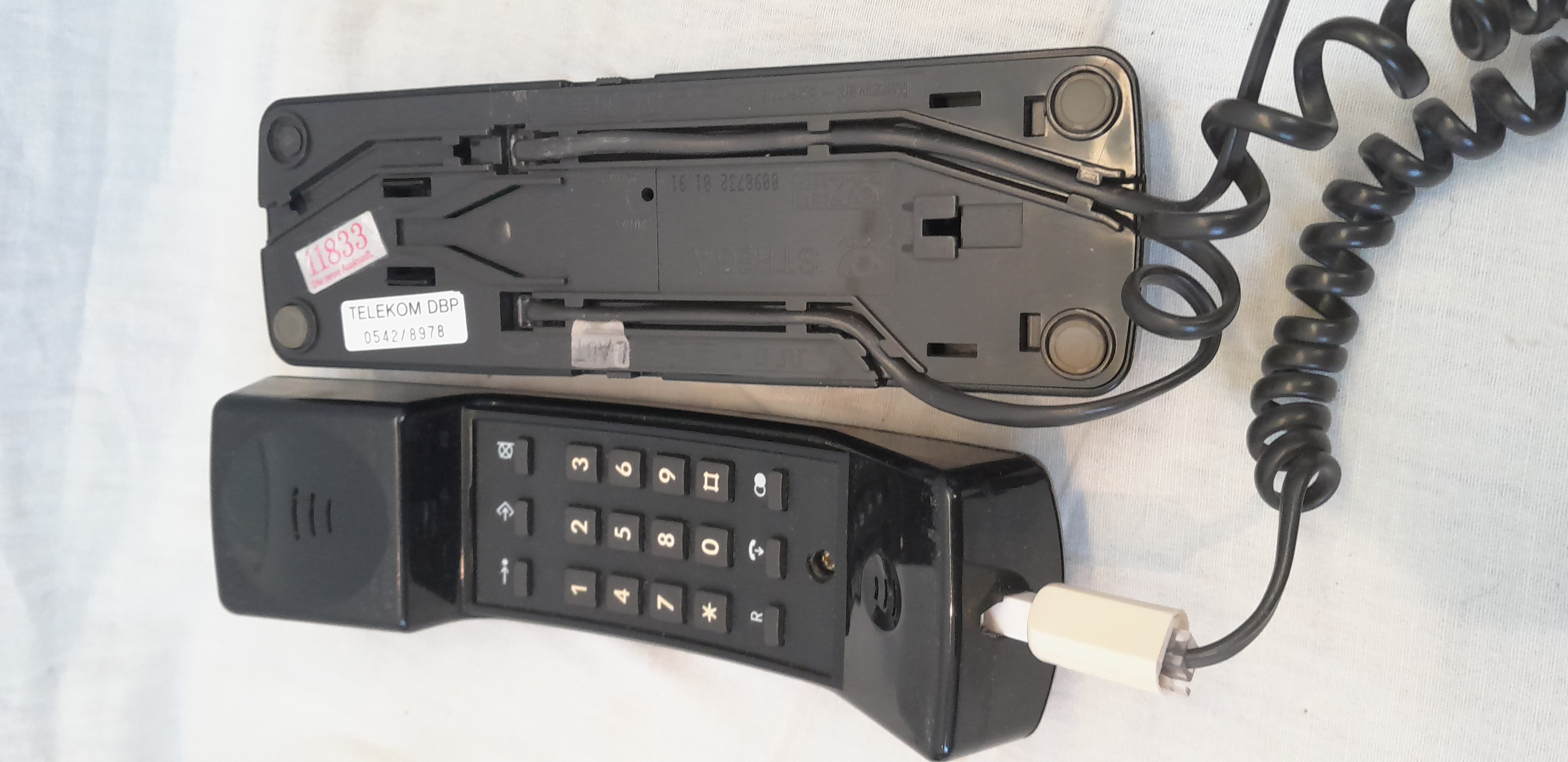 Mit ganz langem Anschlusskabel, um dem damaligen Telekom- munisten das Gefühl von quasi- drahtlosem telefonieren anzutäuschen,