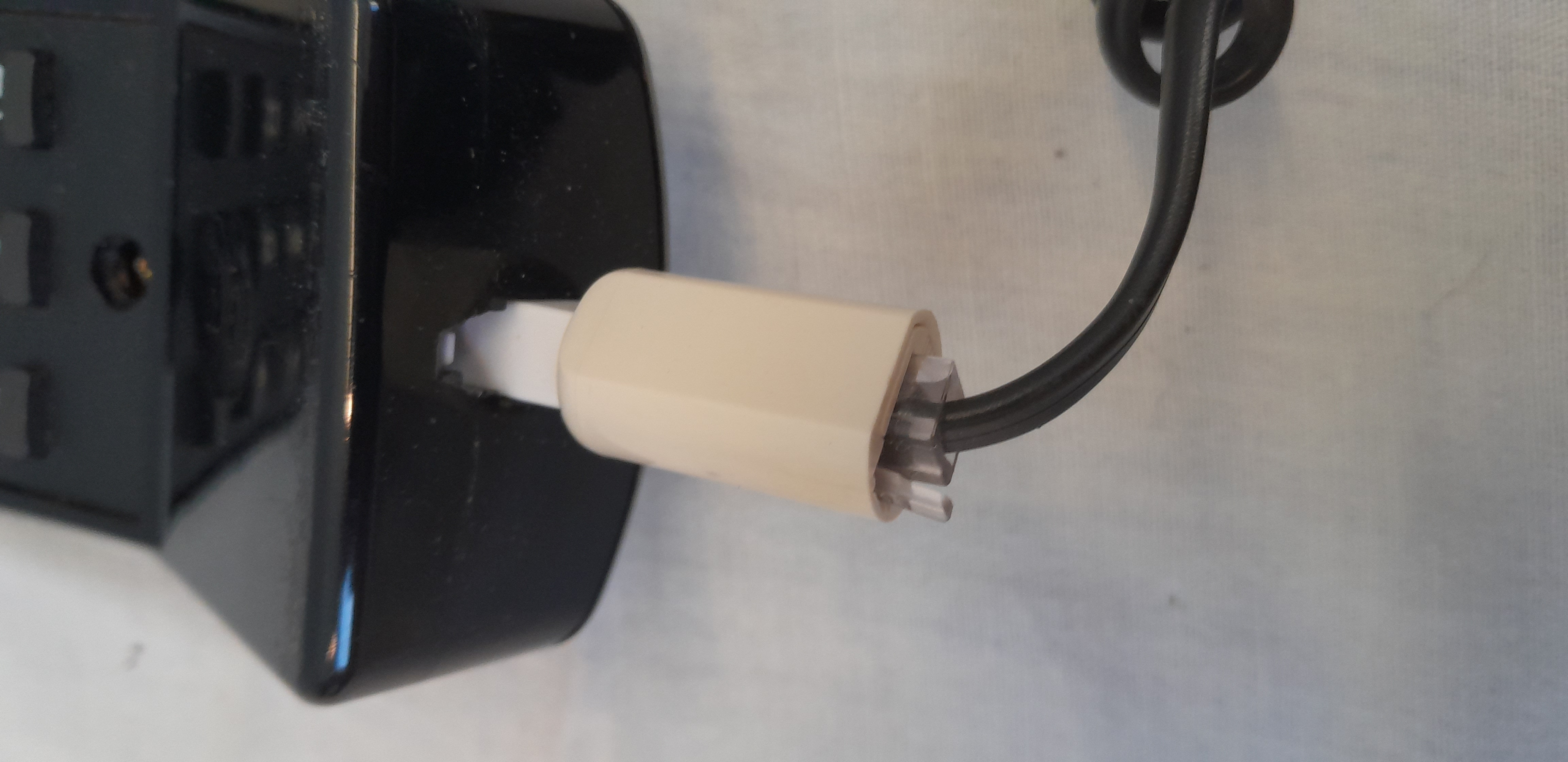 Das ist das weisse Teil am Höhrer, an das das Verbindungskabel zum Basisteil des Telefons angebracht ist.