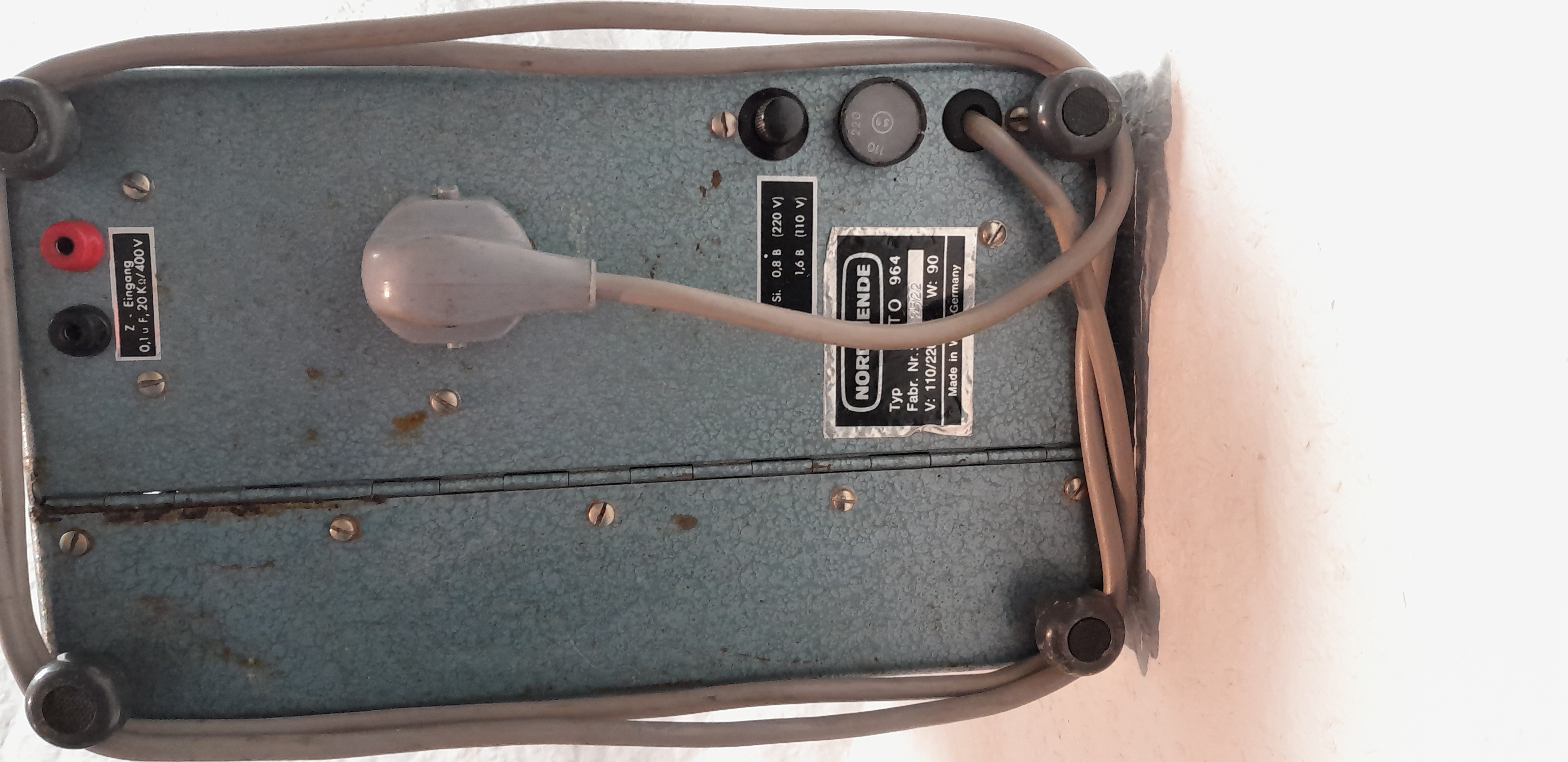 Synchron-Eingang. Eichspannung. Gerät zur Reparatur und Eigenservice aufklappbar.